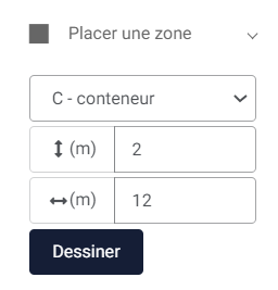 Il est possible de définir si la zone que vous dessinez est un conteneur, une place de parking ou une "autre" zone.
