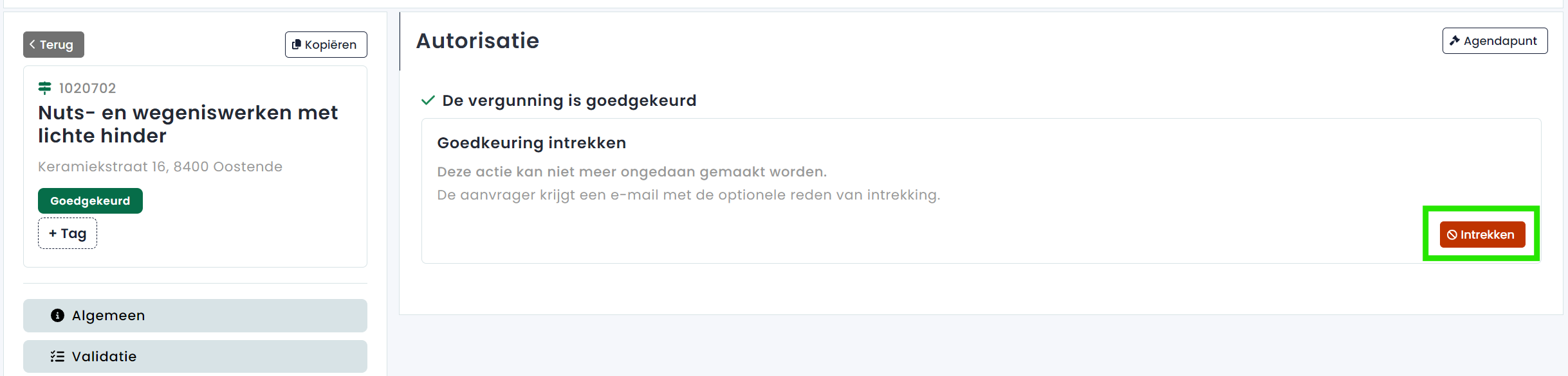Een vergunde inname die vroeger gedaan is, of die geannuleerd wordt, kan u steeds intrekken. Hiermee verwijdert u de informatie uit GIPOD: