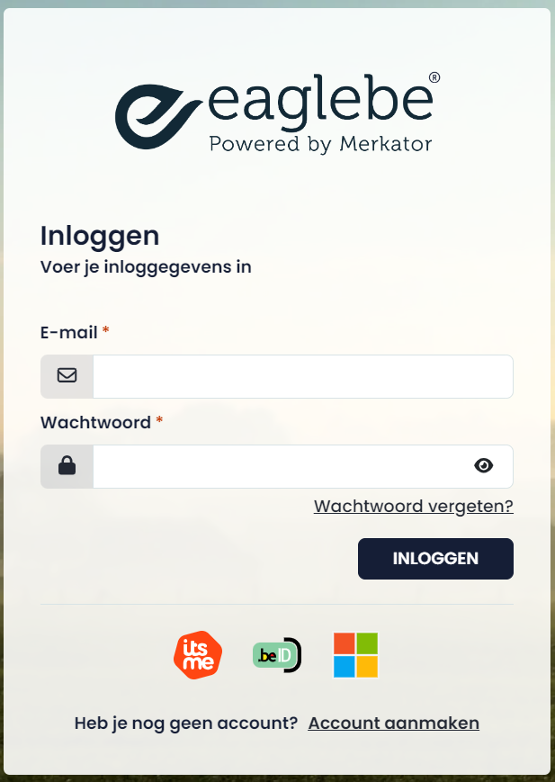 Indien een externe organisatie deze koppeling niet heeft, dan kunnen gebruikers nog steeds toegang krijgen tot EagleBe op de traditionele manier (login met e-mail en wachtwoord).