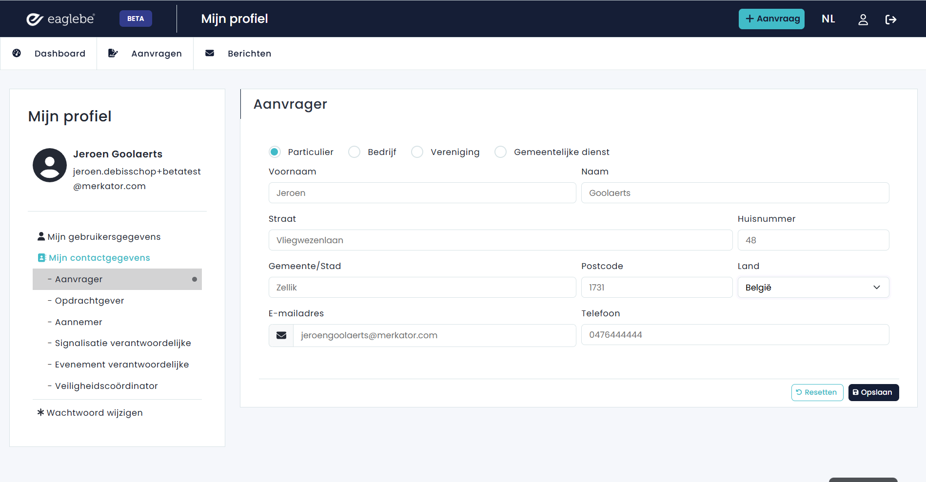 Vanuit je Eaglebe Portaal kan je verschillende profielinstellingen opslaan zodat deze automatisch worden ingevuld bij volgende aanvragen.