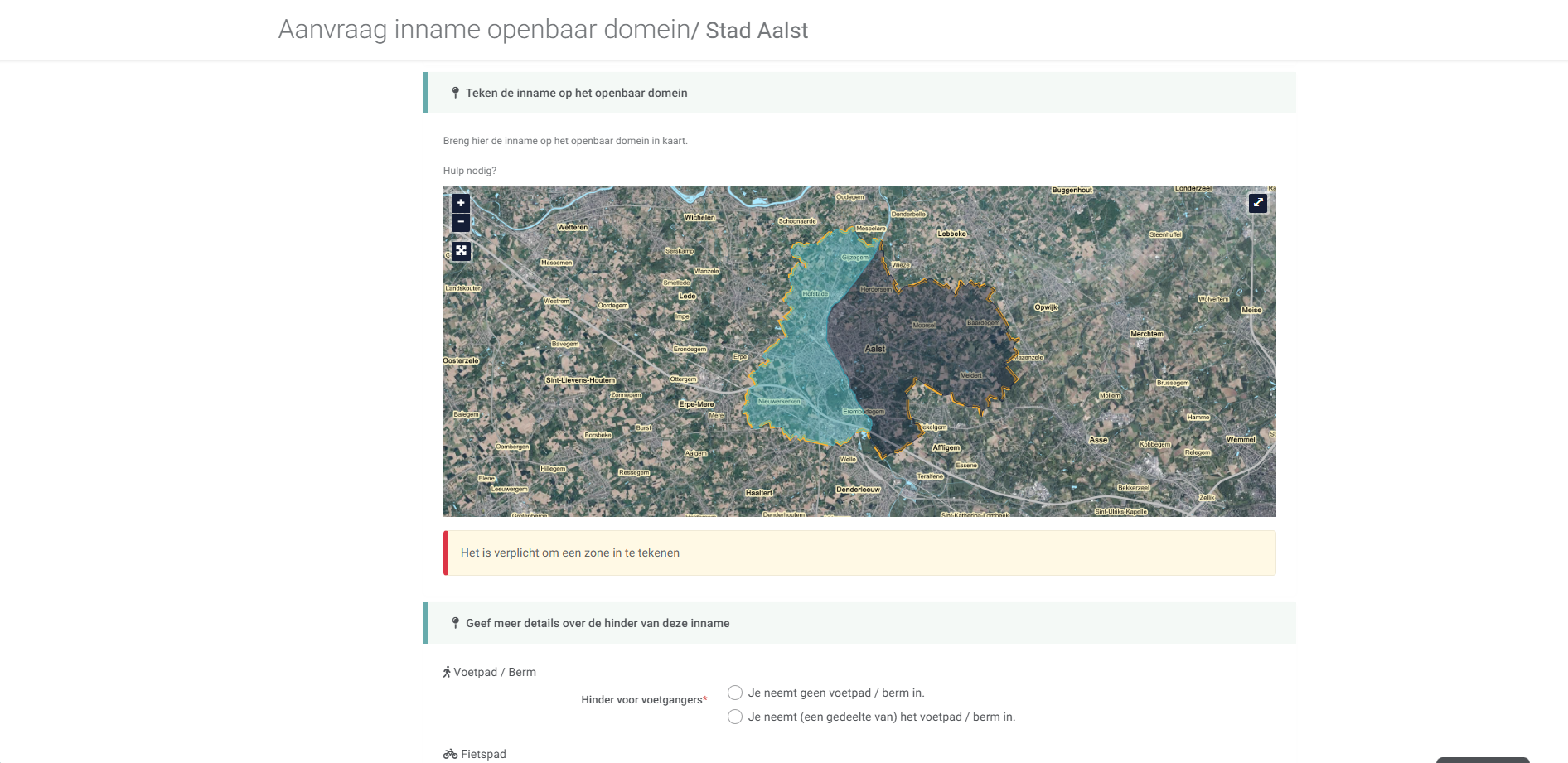 - Standaard afdeling: de afdeling die verantwoordelijk is voor de Validatie van dit type. Deze afdeling wordt gebruikt wanneer de zone van de inname buiten de gekende regio's uit de conflictenlaag valt.