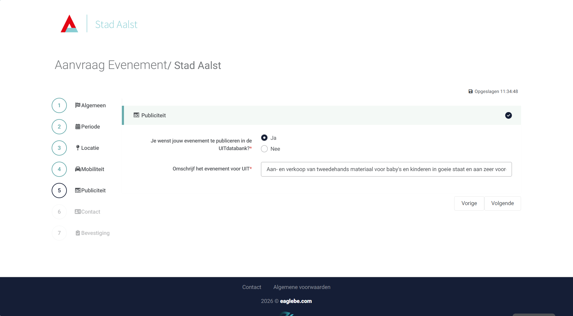 Om een evenement te publiceren in de UITdatabank, zal de organisator dit moeten meegeven binnen zijn Eaglebe evenement aanvraag. Hiervoor hebben we een extra vraag voorzien onder de categorie 'Publiciteit' waar de organisator ook een extra beschrijving van zijn evenement kan meegeven.