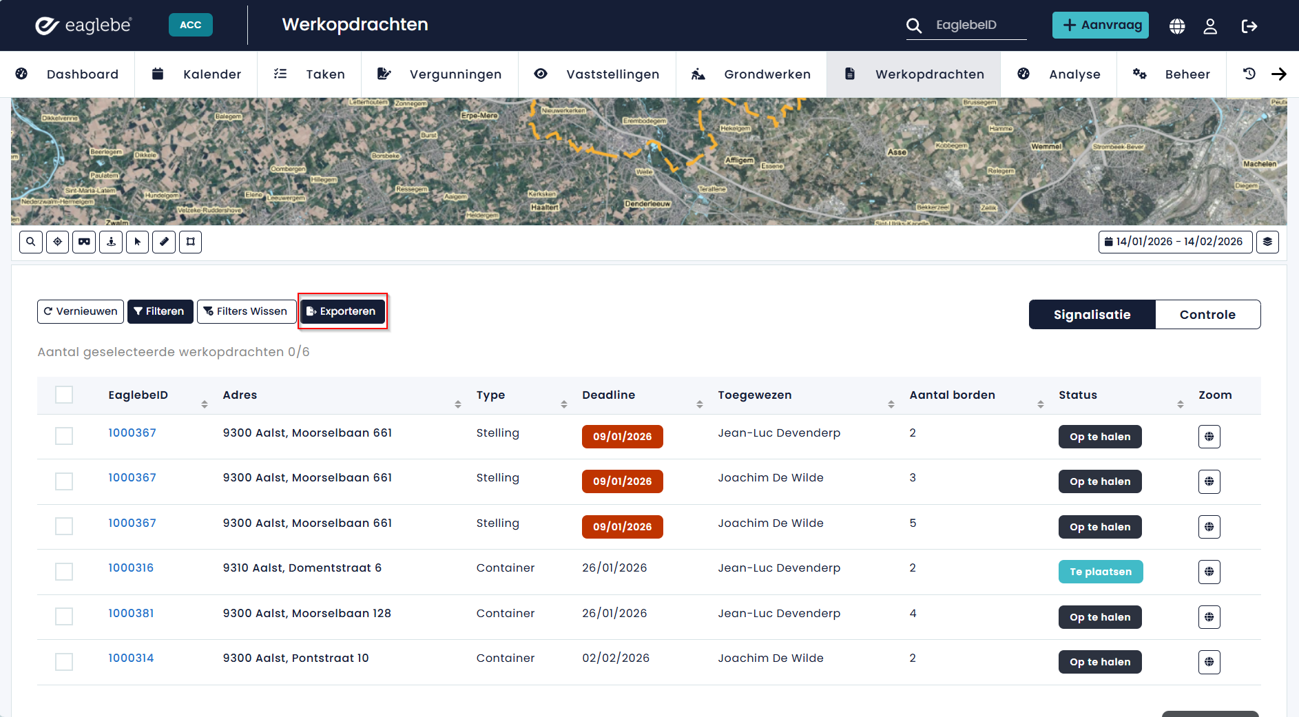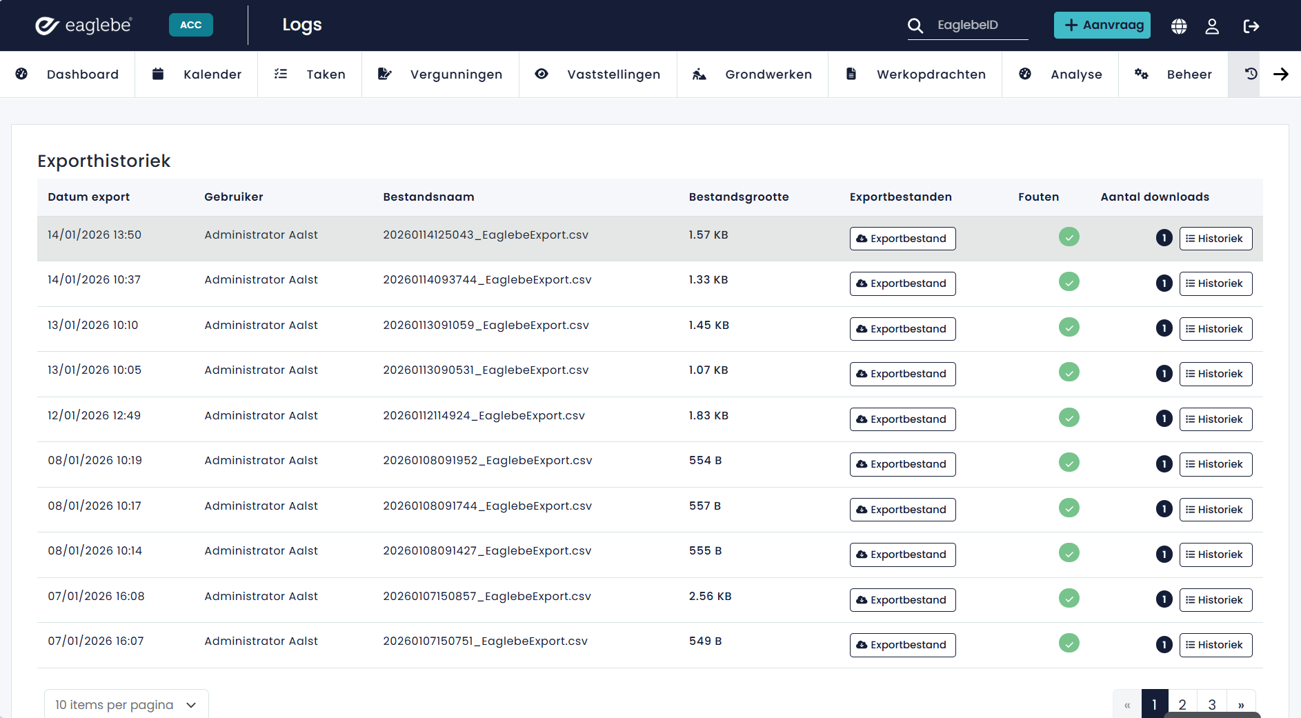 Via het menu Werkopdrachten kan je alle gegevens van de Eaglebe werkopdrachten exporteren als CSV-bestand voor een verdere analyse of backup. In dit artikel kom je meer te weten over deze functionaliteit.