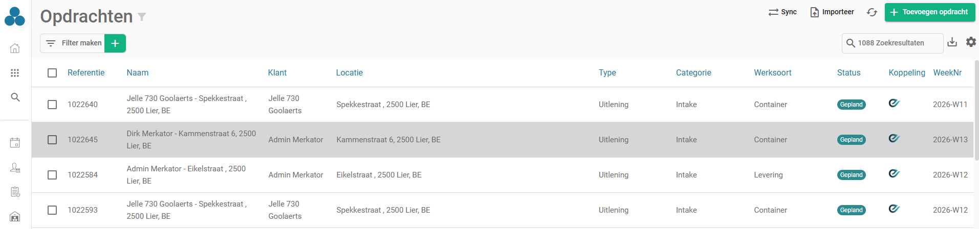 Alle Eaglebe werkopdrachten zijn binnen Arinto te vinden in het menu opdrachten. Je kan deze snel herkennen door het Eaglebe logo en je kan ook meteen naar het gekoppelde Eaglebe dossier door op dit icoon te klikken.