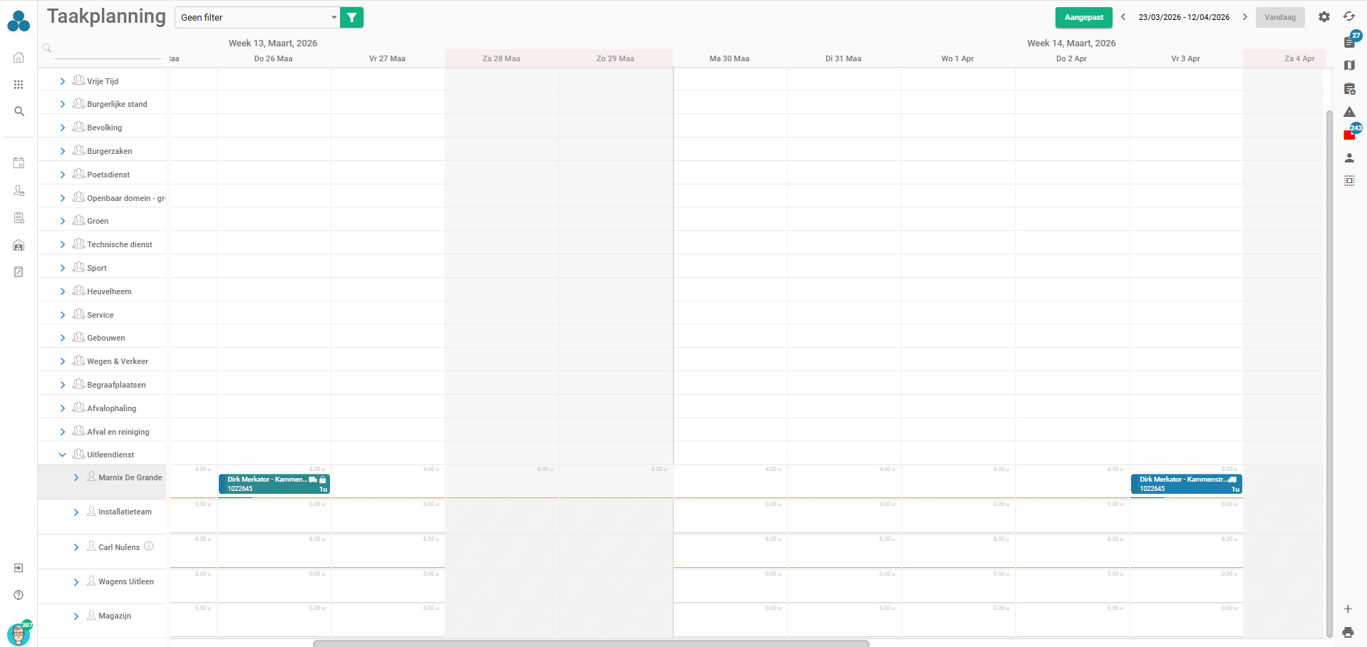 De werkopdrachten komen ook terecht in de Taakplanning van Arinto. Hier zal de planner de taken moeten slepen naar het team/uitvoerder die het transport moeten voorzien en deze vrijgeven via rechtermuisklik.