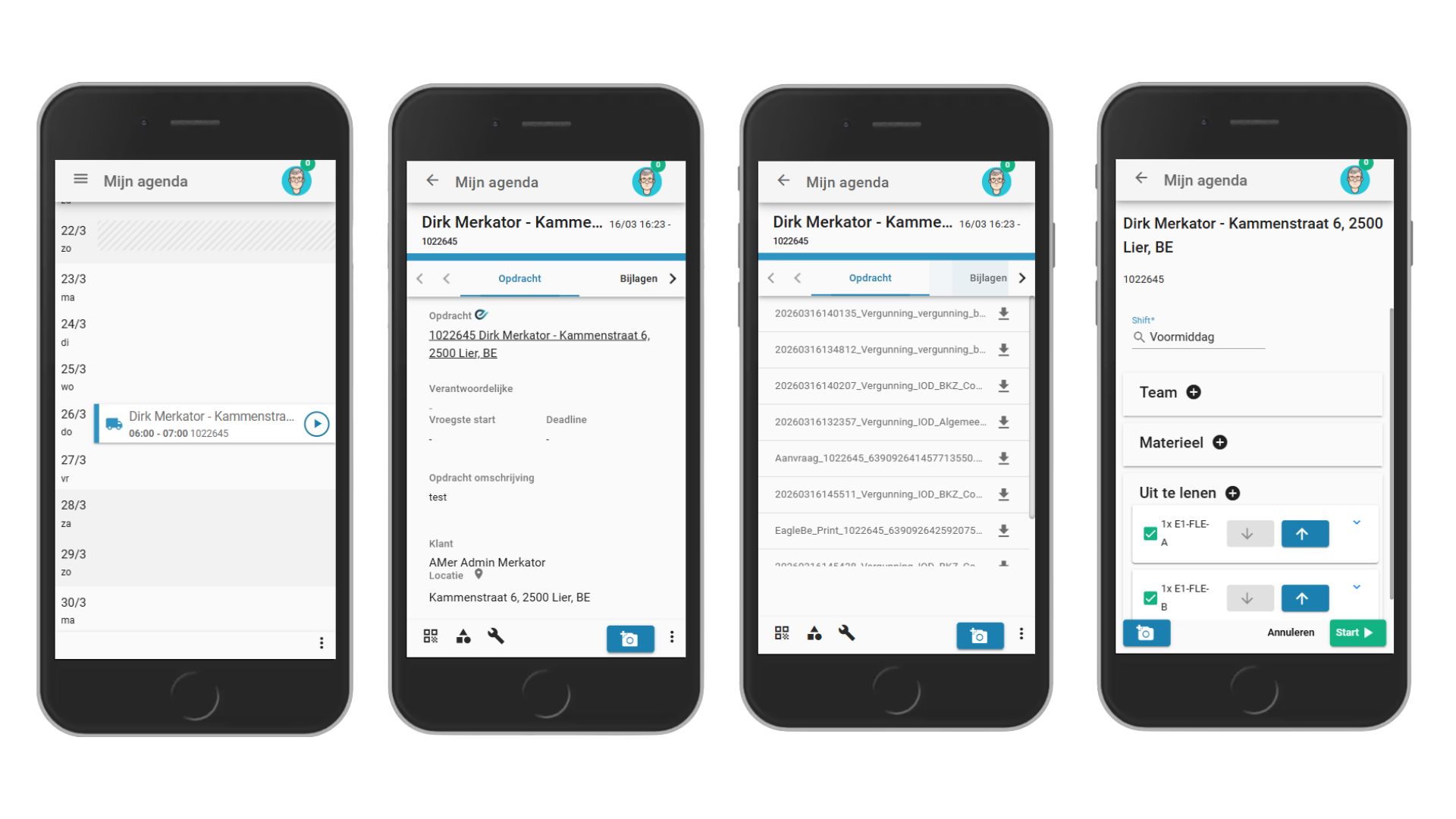 Eens de taken werden ingepland, ziet de uitvoerder deze verschijnen in zijn agenda binnen de Arinto app. Door de taak aan te klikken binnen de agenda open je meer details van de taak.